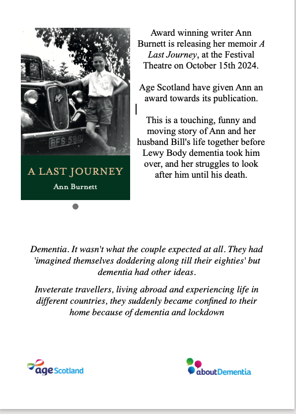And a new tack – I have written a song! A singing group we attend is run by a very talented musician who has composed a piece just for our group and who asked if I would write the words. It will be premiered at the Gathering, a getting together of the many groups around East Lothian supporting those with dementia at which we will be singing. I hope they like Morning, Mrs Magpie!
